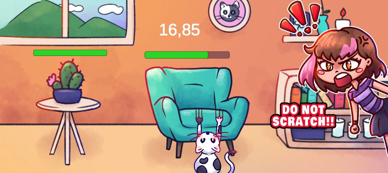 There’s only one problem: Karen, your owner, can appear at any moment. If she catches you scratching while she’s watching… game over.